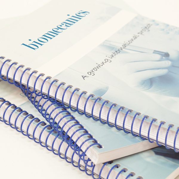 Os mostramos el modelo de libretas que han hecho con nosotros la empresa Biomecanics. Este cliente ha apostado por un modelo de tamaño A5 o 210 x 148 mm. Con una personalización del 100%, utilizando sus colores corporativos y poniendo su imagen y frase corporativa en la portada.